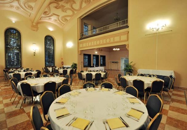 Con capacidad para 300 personas, y decorado con 10 hermosas cristaleras con motivos culturales-literarios cuenta con amplios techos, acústica y escenario para realizar todo tipo de acontecimientos como bodas, comidas de empresa, conferencias, convenciones, conciertos, eventos de baile ó danza, etc…